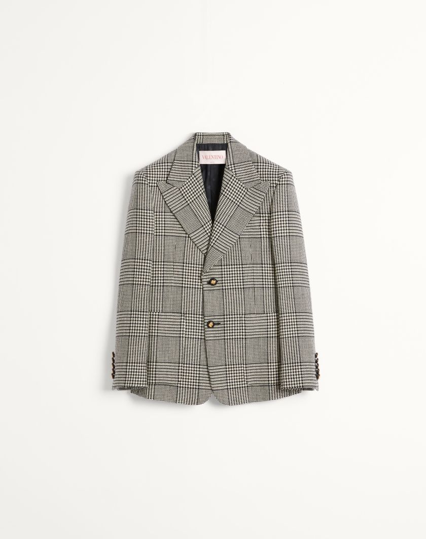 Giacca monopetto Valentino in lana con motivo check su pied de poule all over